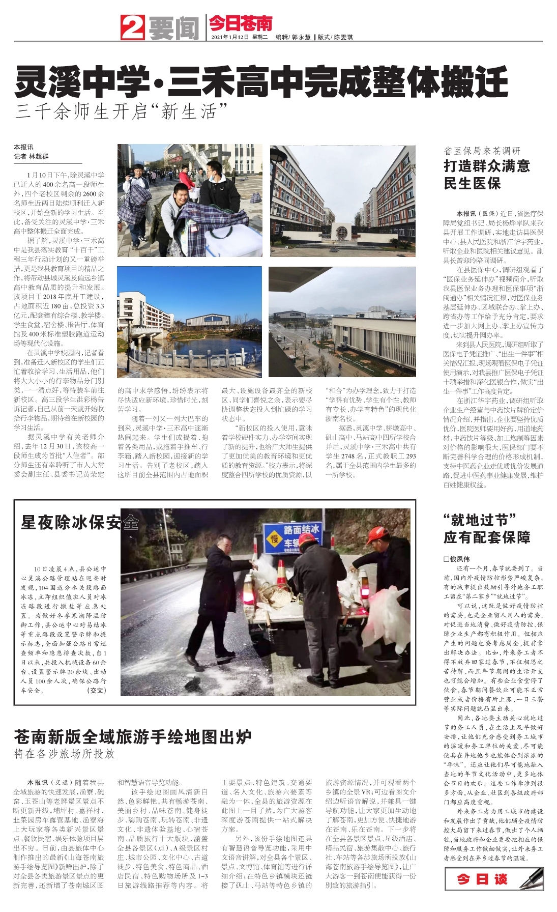 1月10日下午,除灵溪中学已迁入的400余名高一段师生外,四个老校区剩余的2600余名师生近两日陆续顺利迁入新校区,开始全新的学习生活。至此,备受关注的灵溪中学·三禾高中整体搬迁全面完成。