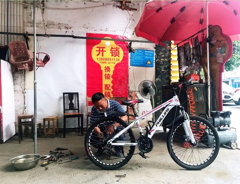修车配锁31年,陈师傅很快乐。2022年9月4日摄