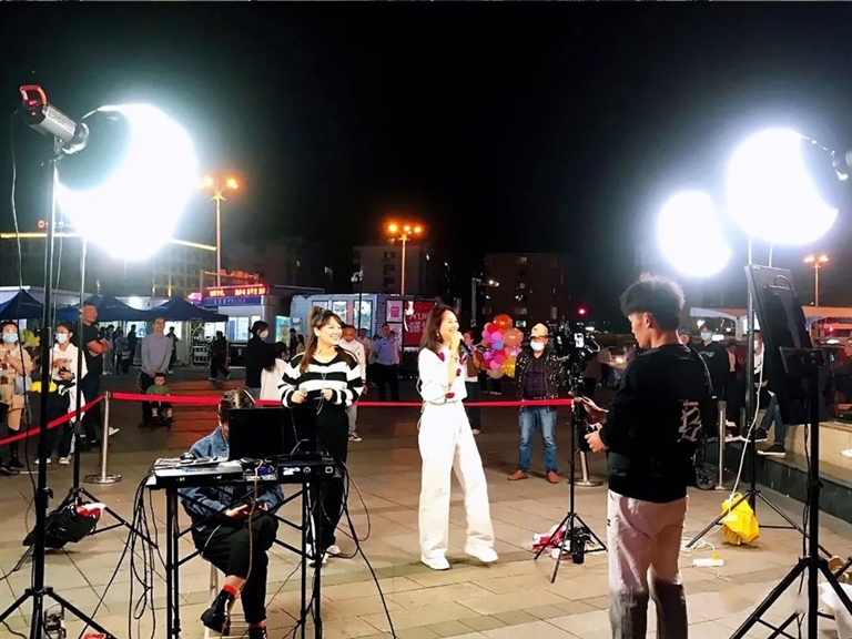 灵溪街头表演唱,苍南银泰城广场。2022年10月15日摄