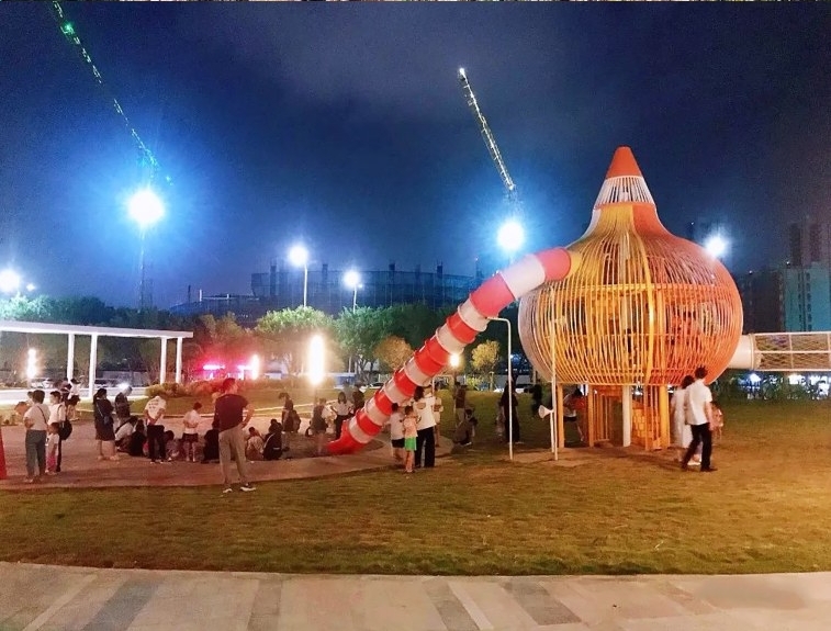 这里是小朋友的乐园!县城新区中心湖公园。2022年9月9日摄