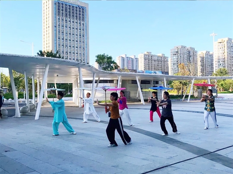 享受太极,苍南县城新区状元公园。2022年9月8日摄